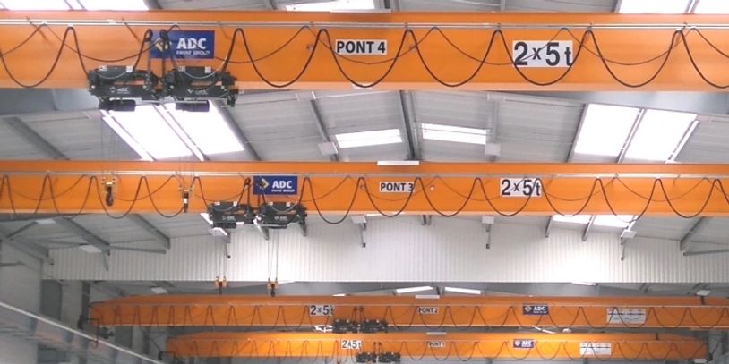ADC single-girder overhead cranes are perfectly suited to everyday uses and present few constraints. These overhead handling cranes are designed for your needs with lifting capacity of up to 12.5t and a span of up to 30 meters, and can be installed in new or existing buildings. Our single-girder overhead cranes are manufactured either with commercial profiles with wide wings for good horizontal inertia, or in box sections, for large spans. The box beams are produced on an automatic welding bench in our factory in Parthenay (79). The beam-box spring connection benefits from particular attention in our design, thus making it possible to create a rigorous geometric whole. This entire assembly is implemented on an assembly bench in the workshop. OVERALL CRANES WITH REDUCED HEADROOM Our handling cranes are equipped with cable hoists with reduced headroom and allow maximum lifting height to be obtained. These cable hoists, also designed and manufactured in Parthenay (79), make ADC the only French manufacturer of complete overhead cranes. In addition, thanks to its Metal Frame department, ADC is able to calculate and provide the supporting structure (rollover paths, self-supporting structure), and even the complete building. This dual skill considerably strengthens the advisory and advocacy role of our company.